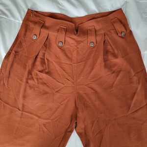 Stylish wide leg pants. Rich terracotta hue. Ideal for any occasion.