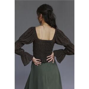 Perfect fall trendy blouse by Anthropologie in a size XL. Beautiful shimmer. Smocked detail. Puffed sleeves. Square neck. Pullover styling. Polyester, metallic fiber.