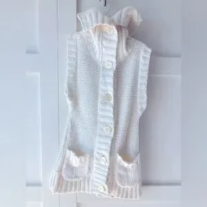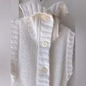 This versatile garment can be worn as a dress or a vest. Neck can be worn buttoned up like a turtle neck or folded down like a cowl neck.