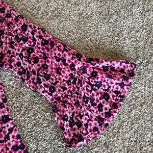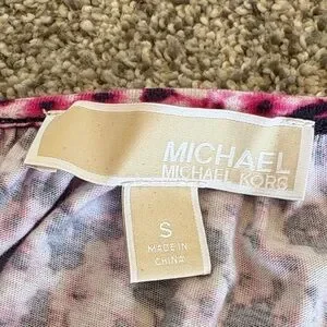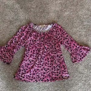 Michael Kors Pink/Navy Blue Floral Blouse 3/4 Bell Sleeves size Small