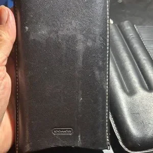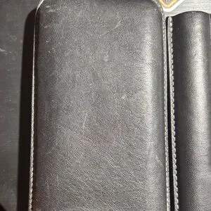 Pre-owned Coach cigar case in excellent condition. Black leather with embossed Coach logo. Holds up to 3 cigars. Handmade in the Dominican Republic. Minimal wear, no scratches or stains. Perfect for travel or gifting.