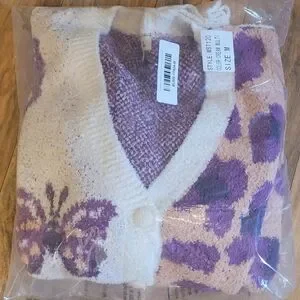 POL Butterfly & Leopard Contrast Cardigan, NIB, MED, Peach/Purple, New Release🦋