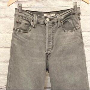 Levi’s W29 (US 8/9) Ribcage Straight Ankle Women’s Jeans, Light Gray, Stretch. Preloved. Bought a size too small, so only wore them a few times. Excellent condition. No stains or flaws.