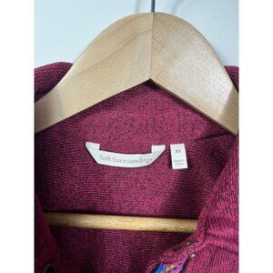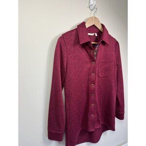 Soft Surroundings Willow Shirt Jacket XS Red Maroon Snap Shacket Aztec Southwest