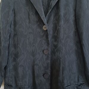 Chic black floral oversized button down shirt. Subtle pattern adds elegance. Ideal for versatile styling up or down.