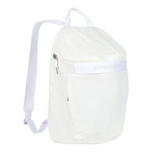 Delivery Duty Paid included – Estimated retail price for this item is 950.00 USD | Length: 9.0" x Width: 4.5" x Height: 18"; Strap Drop Length: 19"; Handle Drop Length: 2.5" | Front zipper closure | One large interior slip pocket | Two exterior side zip pockets | Silver-tone hardware; Reflective GIVENCHY webbing | G-Trek line; One rolled top handle; Two adjustable shoulder straps | Machine wash | 100% Polyamide | Made in Italy Measurments: width: 114 mm length: 228 mm height: 457 mm strap length: 482.6 mm handle drop: 61 mm