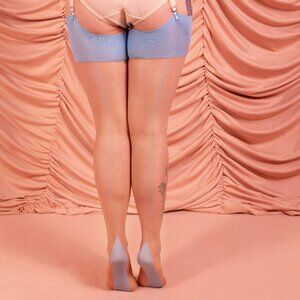 What Katie Did Glamour Sheer Contrast Seamed Stockings Champagne / Sky Baby Blue