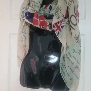 Stylish scarf with bold text and flag accents. Perfect for any outfit.
