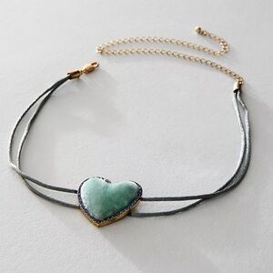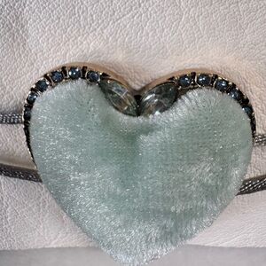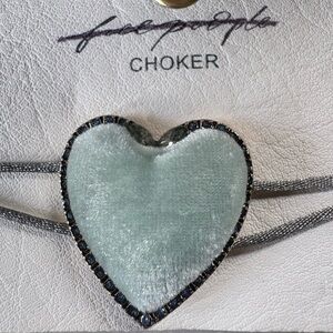 Free People Velvet Heart Choker Sage Green NWT Coquette Dainty Blue Rhinestones💙