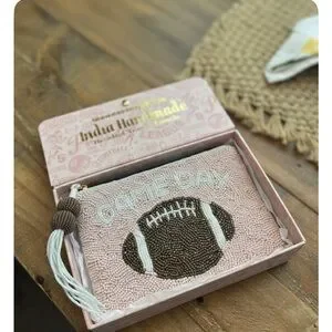 Celebrate game day in style with the Lindau Handmade Pink Beaded Clutch. This chic accessory features intricate beadwork and a playful football design, perfect for sports enthusiasts.