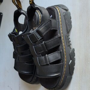 Chunky black sandals with adjustable straps. Iconic Dr. Martens design.