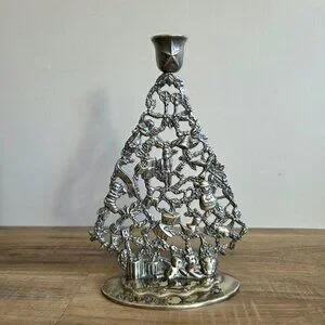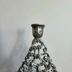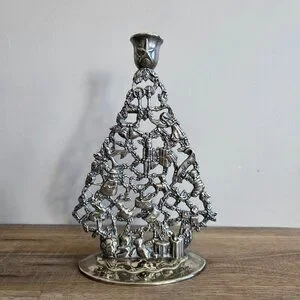 Vintage Elegance silver plated Christmas tree candleholder. Holiday decor.