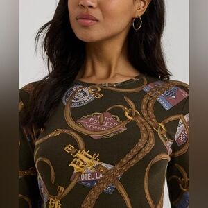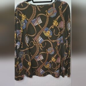 Lauren Ralph Lauren Equestrian Travel Logo Print Preppy Long Sleeve Shirt 3X
