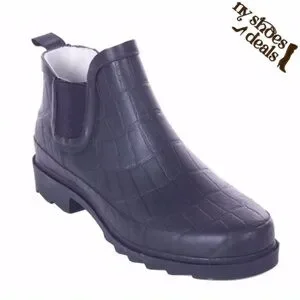 Women Rubber Rain Boots, Black Ankle 5" Garden Booties Rainboots