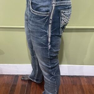 New with tags jeans slim straight embroidery back pocket premium cotton blue stretchy