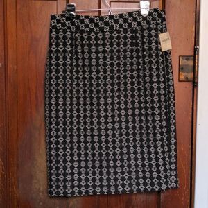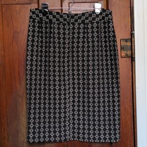 Coldwater Creek Black + White Diamond Motif Midi Pencil Skirt Sz 8
