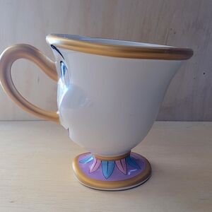 Adorable Disney mug featuring Chip with a gold handle and rim. Smiling face design adds charm. Never used, excellent condition!