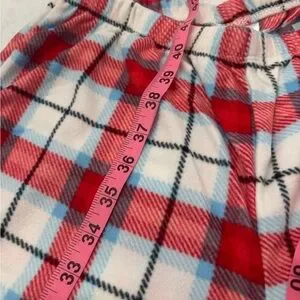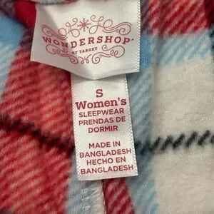 Soft pajama pants by Wondershop in red light blue and white plaid. Great for relaxing and sleeping. Extra soft and comfortable. Made from recycled polyester. Would be great for the holidays.