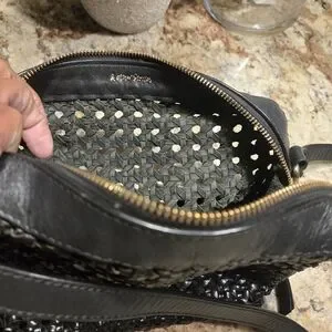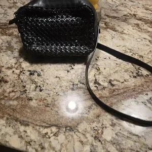 Black interwoven leather crossbody bag. Beautiful crossbody bag.