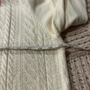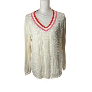 Talbots Pointelle Cream V-Neck Sweater with Pink Trim