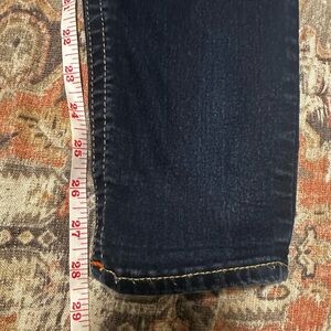 True Religion Skinny Jeans. Low rise in a great dark blue color featuring classic horseshoe back pockets. Y2K fashion. Super stretchy and comfortable. Very gently used condition. Make an offer!