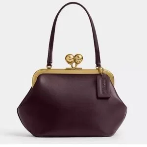 Chic Coach Kisslock Frame Bag in rich dark purple with elegant brass frame. Ideal for a stylish touch.