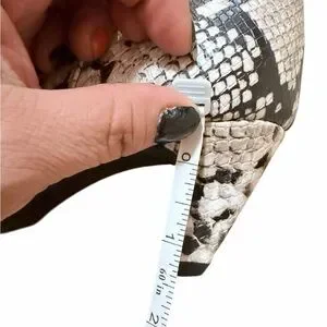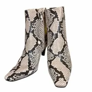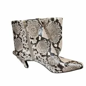 Step out in style with these chic snakeskin ankle boots. Perfect for adding a bold touch to any outfit. Side zippers. No box