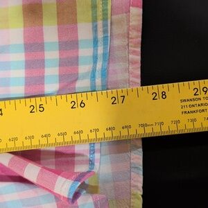 Brighten your wardrobe with this colorful plaid women's top. Perfect for casual outings, this top offers a vibrant mix of pink, blue, and green hues.
