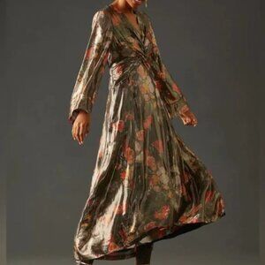 Anthropologie x Caballero Deep-V Maxi Floral Metallic Dress