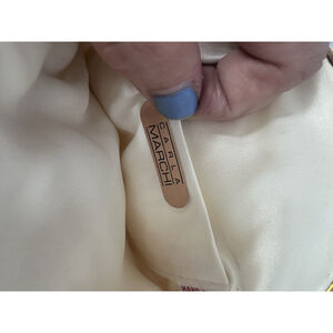 The Carla Marchi White Sequin Clutch Bag Purse with Metal Strap is a vintage-inspired accessory perfect for formal occasions or parties. With a solid black exterior accented by rhinestones, this small shell-shaped bag features a button and snap closure, gold hardware, and a fabric lining. The detachable metal strap adds a touch of elegance to this elegant and sophisticated clutch from the Carla Marchi brand. Made in China, this stylish handbag exudes a classic formal theme with a modern twist.