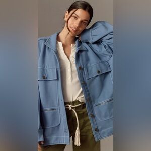 New with tags Anthropologie Pilcro blue microfleece button-front jacket.
