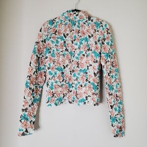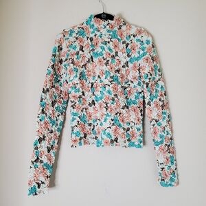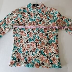Dolan Left Coast Printed Pebble Smocked Turtleneck Top Blouse Sz Medium Crinkle