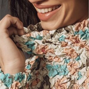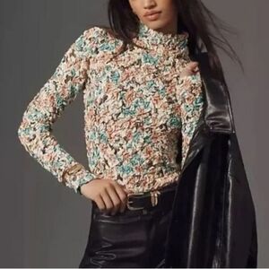 Anthropologie Dolan Left Coast Printed Pebble Smocked Turtleneck Top Blouse