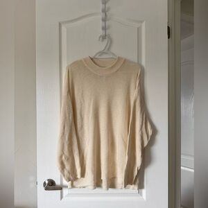 Has a little darker spot on the back (see last photo) but not noticeable when wearing. Super cozy and soft.