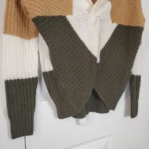Full Circle Trends Twist Front Color Block V-neck Knit Sweater 100% Acrylic Women's Size Small