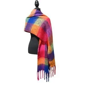Steve Madden Women's Brushed Plaid Blanket Wrap Scarf Multicolor Winter OSFM