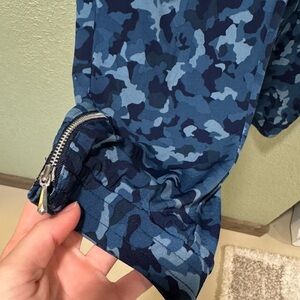 Stylish blue camouflage track pants. Comfortable fit. Perfect for casual wear.