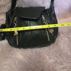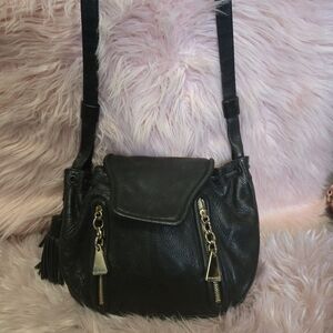 Chic black leather crossbody bag. Features gold chain details and tassel. Stylish and versatile for any outfit.Great condition. Super soft.