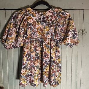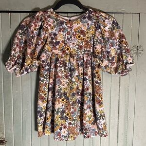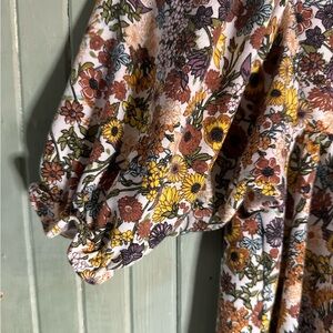 Elegant dress with a fall floral design. Features a blend of autumn colors. Perfect for family photos or an afternoon at the pumpkin patch. 🍁🎃