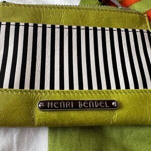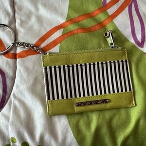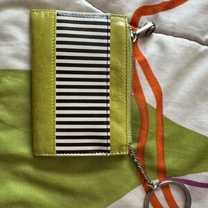 NWOT - HENRI BENDEL Centennial Stripe Lime Green/Black/White Mini Leather Coin Purse/Card Holder w/ Keychain fob and gorgeous, bright fuchsia satin lining - Never used!! ๐๐ค๐ค๐ฉท๐ค๐ค๐