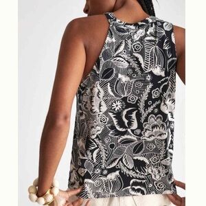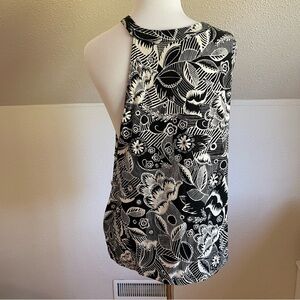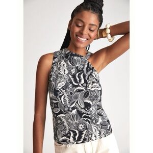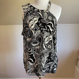 NWT Anthropologie Black White Floral Asymmetrical Cutout Cotton Top