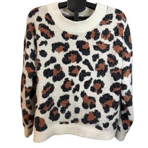 Sweet Lovely by Jen Leopard Print Sweater, Sz 1XL/2XL Fuzzy Soft Crew Neck 2/$25