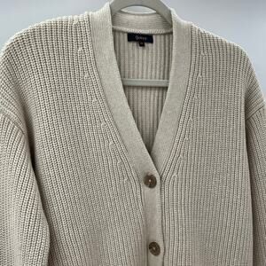 Quince XS 100% Organic Cotton Fisherman Boxy Cropped Cardigan Speckled Beige. In good pre-owned condition with no flaws to note.