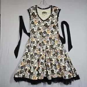 Black Lace Trim around Neck and Arm Holes. Black Tulle Ruffle at Hem of the Dress.