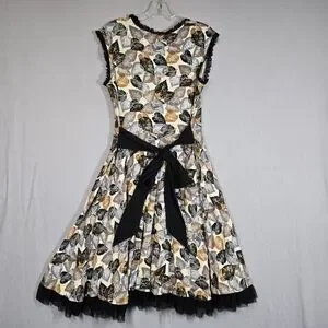 Effie's Heart Women's Fit & Flare Retro Dress Fall Leaf Print Pockets Size L