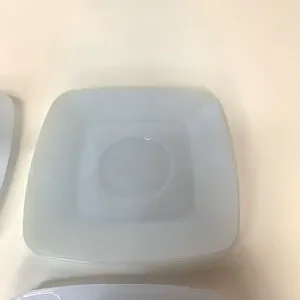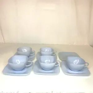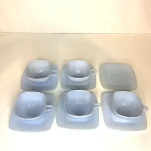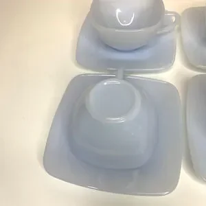 SET 5 FIRE KING AZURE BLUE CHARM AZURITE DELPHITE MILK GLASS SQUARE CUP SAUCERS
