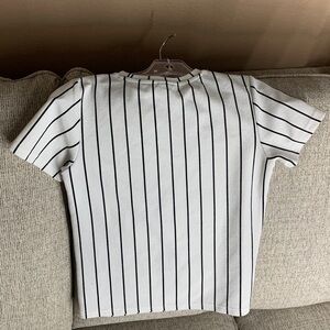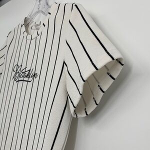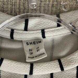 Sz 9y SHEIN girls Cream and Black Striped Kids T-Shirt