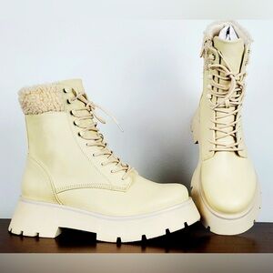 Circus by Sam Edelman Women's Larsa Ivory Cream Combat Boot Saks Fifth Ave NWT
