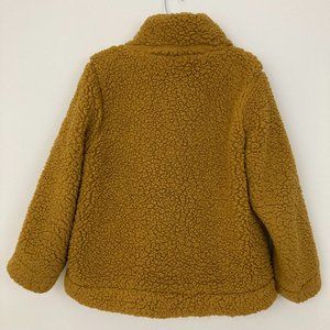 Madden Teddy Bear Jacket Size L Mustard Full Zip Pockets Lined Long Sleeve