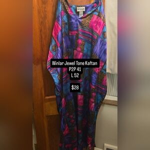 Experience elegance with the Winlar Jewel Tone Kaftan. This stunning piece features vibrant blue and purple hues, perfect for adding a pop of color to your wardrobe.